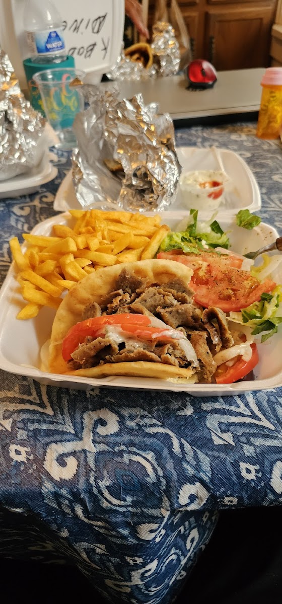 First time trying their gyros. We got two gyro dinners. Overall pretty good experience. A lot of meat for the price you pay which is NICE. Fries were perfect too. Would definitely recommend to anyone craving gyros. They also have hamburgers and hot dogs but I haven't tried those yet. Gyros and fries though, 10/10.
